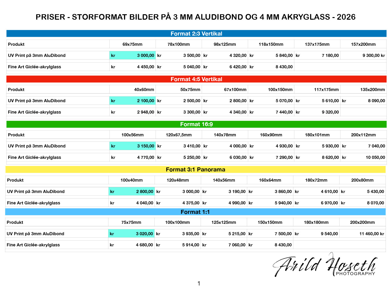 Priser på storformatbilder 2026